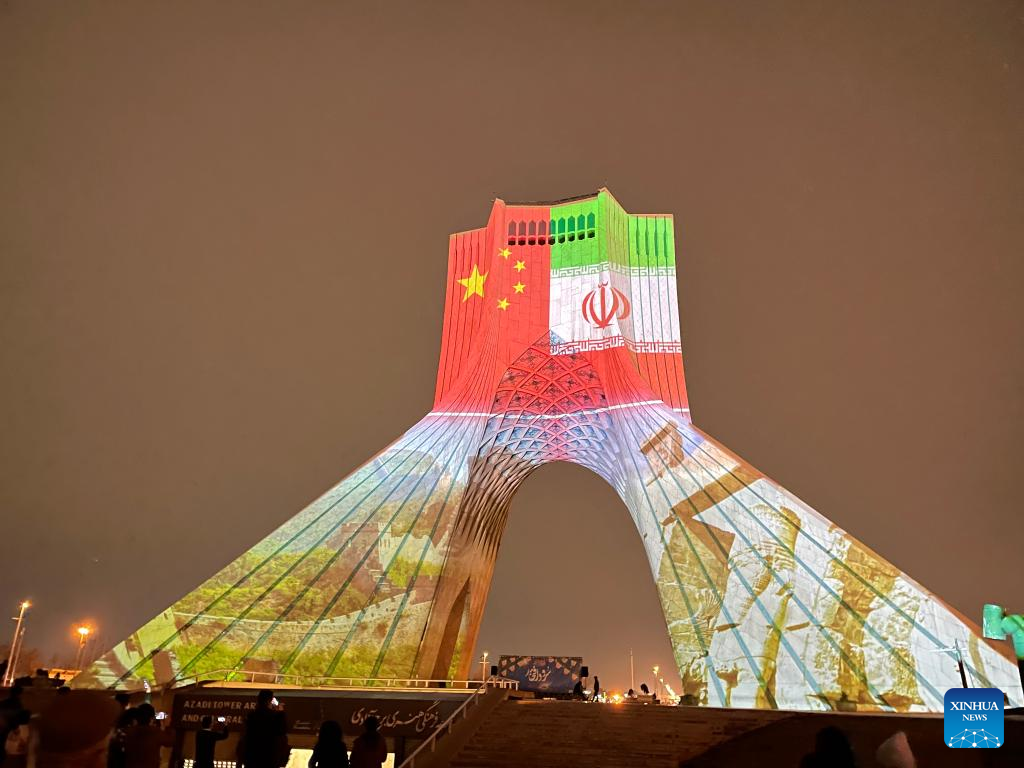 TEHRAN, Jan. 31 (Xinhua) -- The iconic Azadi Tower in Tehran, Iran's capital, flashed red on Monday, a color associated with good luck and happiness in China, to mark the Chinese Lunar New Year, or Spring Festival, which falls on Feb. 1 this year.