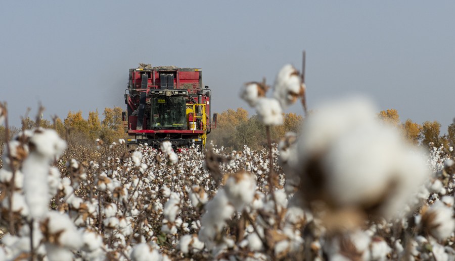 At present, Xinjiang has formed a cotton industry system integrating cotton production, service, circulation, processing and sales. In 2021, the total cotton output in Xinjiang reached 5.13 million tonnes, accounting for 89.5 percent of that in the country. The mechanical harvesting rate reached 80 percent.