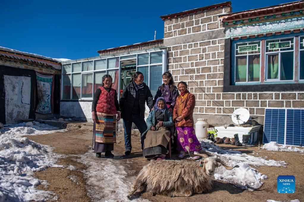 Tenzin Drolma (2nd R) poses for pictures with her family in Gyaga Village of Damxung County, southwest China's Tibet Autonomous Region, Jan. 18, 2022. Tenzin Drolma, 21, was born on the grassland near Lake Namtso in Tibet. In 2020, she was admitted to Jiangsu Food and Pharmaceutical Science College in east China's Jiangsu Province as a Chinese pharmacy major student. The college life in the outside world is fresh to Drolma. She met many new classmates and made many friends. When winter vacation came, Drolma returned to her beloved home. "I leave my hometown in order to come back being a better person," she said. "I hope that when I graduate from college, I can help my family live a better life and I can be a useful person to my hometown and people here." (Xinhua/Sun Ruibo)