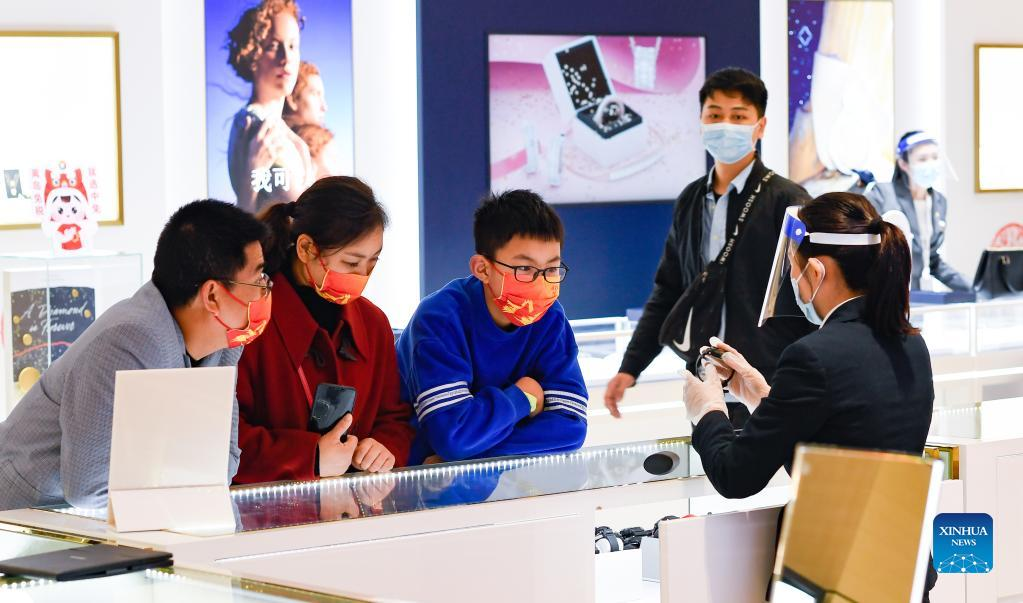 Customers select products in a duty-free shop in Haikou, capital of south China's Hainan Province, Feb. 3, 2022. (Xinhua/Yang Guanyu)