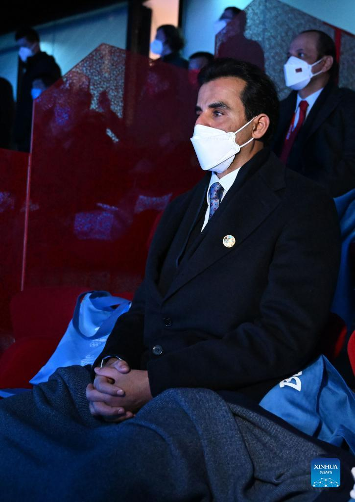 Qatari Emir Sheikh Tamim bin Hamad Al Thani looks on during the opening ceremony of the 24th Olympic Winter Games at the National Stadium in Beijing, capital of China, Feb. 4, 2022. (Xinhua/Ma Ning)