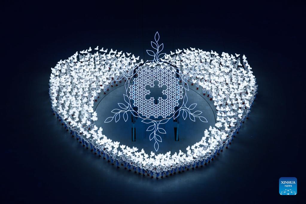 Photo taken on Feb. 4, 2022 shows a scene of performance during the opening ceremony of the Beijing 2022 Olympic Winter Games at the National Stadium in Beijing, capital of China. (Xinhua/Song Yanhua)
