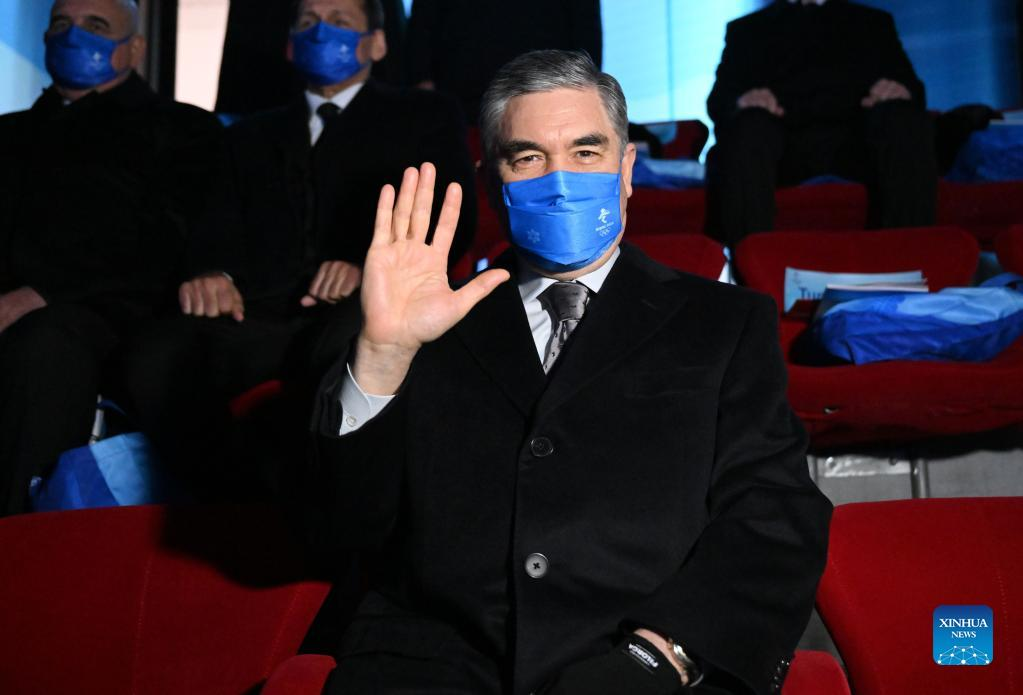 Turkmen President Gurbanguly Berdymukhamedov waves during the opening ceremony of the 24th Olympic Winter Games at the National Stadium in Beijing, capital of China, Feb. 4, 2022. (Xinhua/Ma Ning)