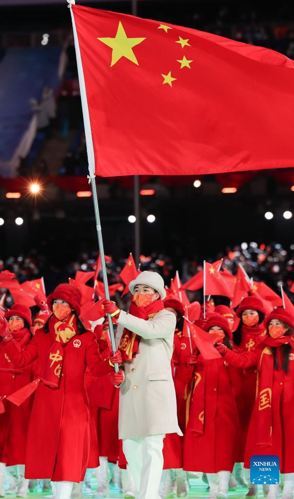 The Olympic delegation of the People's Republic of China parade into the National Stadium during the opening ceremony of the Beijing 2022 Olympic Winter Games in Beijing, capital of China, Feb. 4, 2022. (Xinhua/Wu Wei)