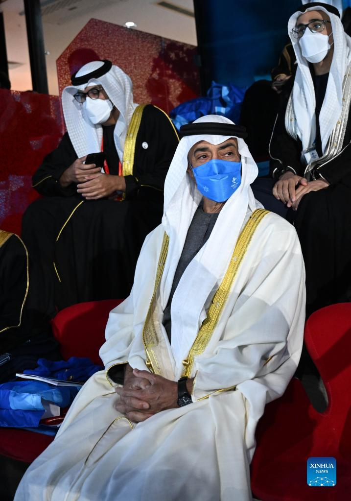 Crown Prince of Abu Dhabi of the United Arab Emirates Sheikh Mohammed bin Zayed Al Nahyan looks on during the opening ceremony of the 24th Olympic Winter Games at the National Stadium in Beijing, capital of China, Feb. 4, 2022. (Xinhua/Ma Ning)