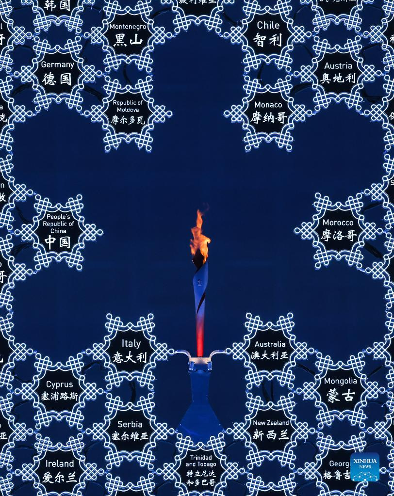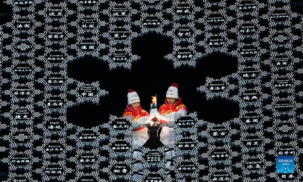 The cauldron is lit during the opening ceremony of the Beijing 2022 Olympic Winter Games at the National Stadium in Beijing, capital of China, Feb. 4, 2022. (Xinhua/Cao Can)