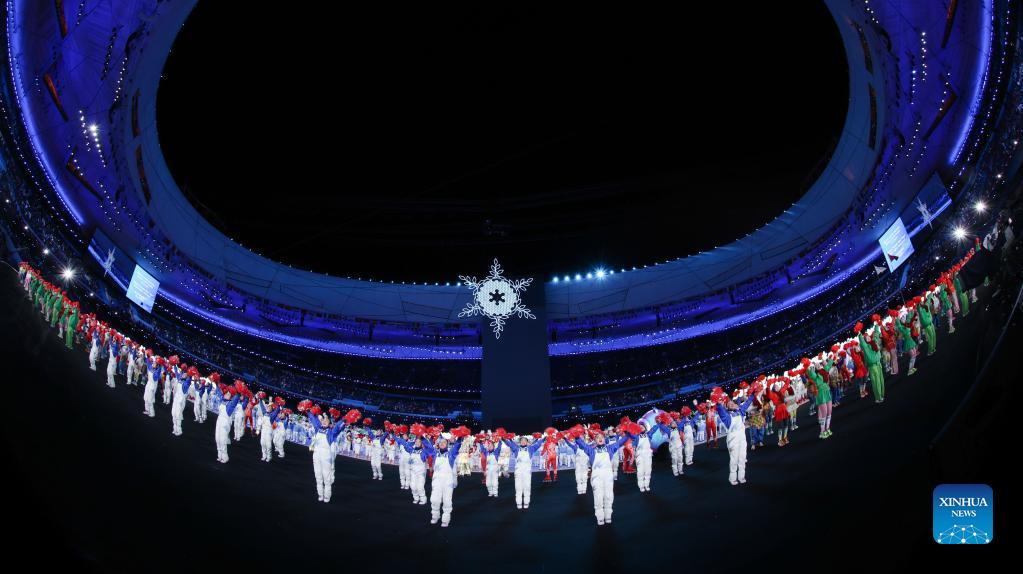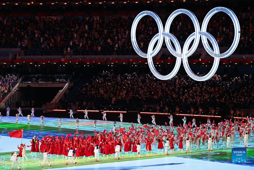 The Olympic delegation of the People's Republic of China parade into the National Stadium during the opening ceremony of the Beijing 2022 Olympic Winter Games in Beijing, capital of China, Feb. 4, 2022. (Xinhua/Cao Can)