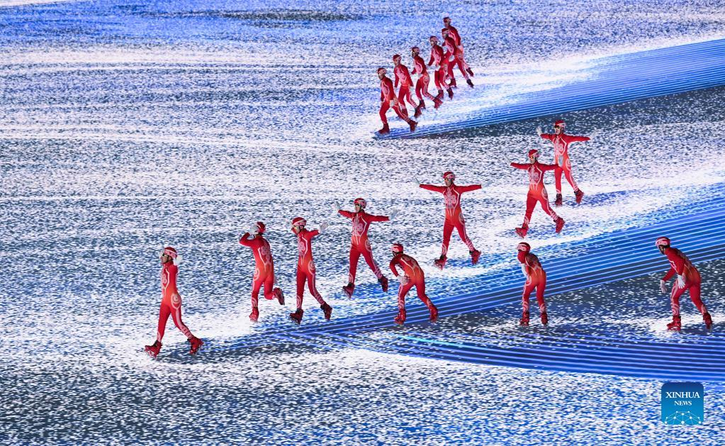 Skaters perform during the opening ceremony of the Beijing 2022 Olympic Winter Games at the National Stadium in Beijing, capital of China, Feb. 4, 2022. (Xinhua/Li Ziheng)