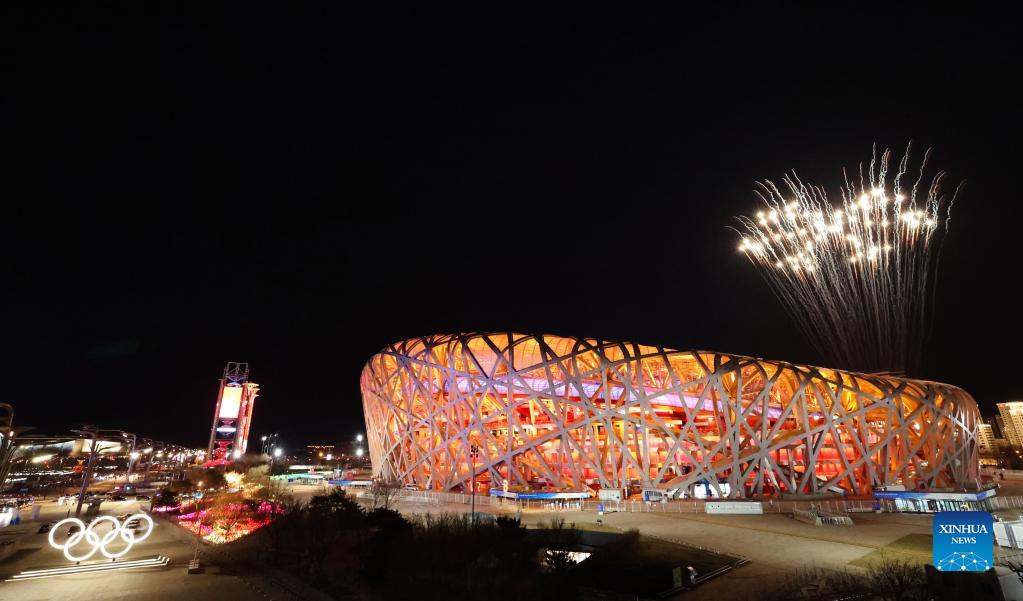 Fireworks illuminate the night sky over the National Stadium during the opening ceremony of the Beijing 2022 Olympic Winter Games in Beijing, capital of China, Feb. 4, 2022. (Xinhua/Li Ziheng)