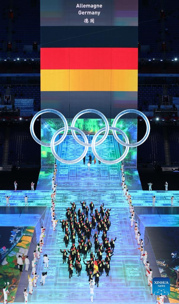 The Olympic delegation of Germany parade into the National Stadium during the opening ceremony of the Beijing 2022 Olympic Winter Games in Beijing, capital of China, Feb. 4, 2022. (Xinhua/Yang Lei)