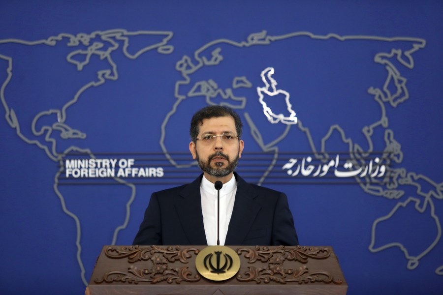 Iranian Foreign Ministry Spokesman Saeed Khatibzadeh speaks during a press conference in Tehran, Iran, on Nov. 1, 2021. (Photo by Ahmad Malek/Xinhua)