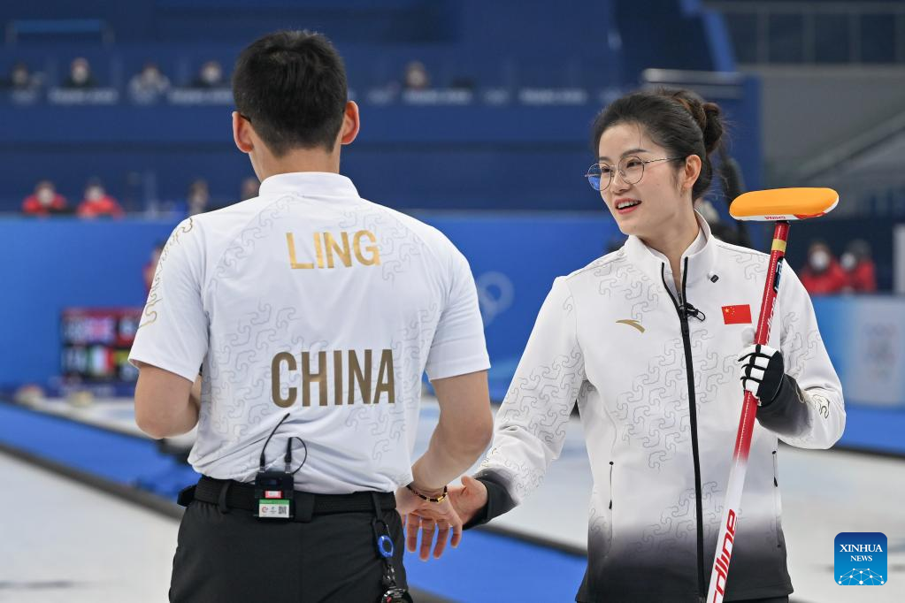 - Highlights of curling mixed doubles round robin event of Beijing 2022