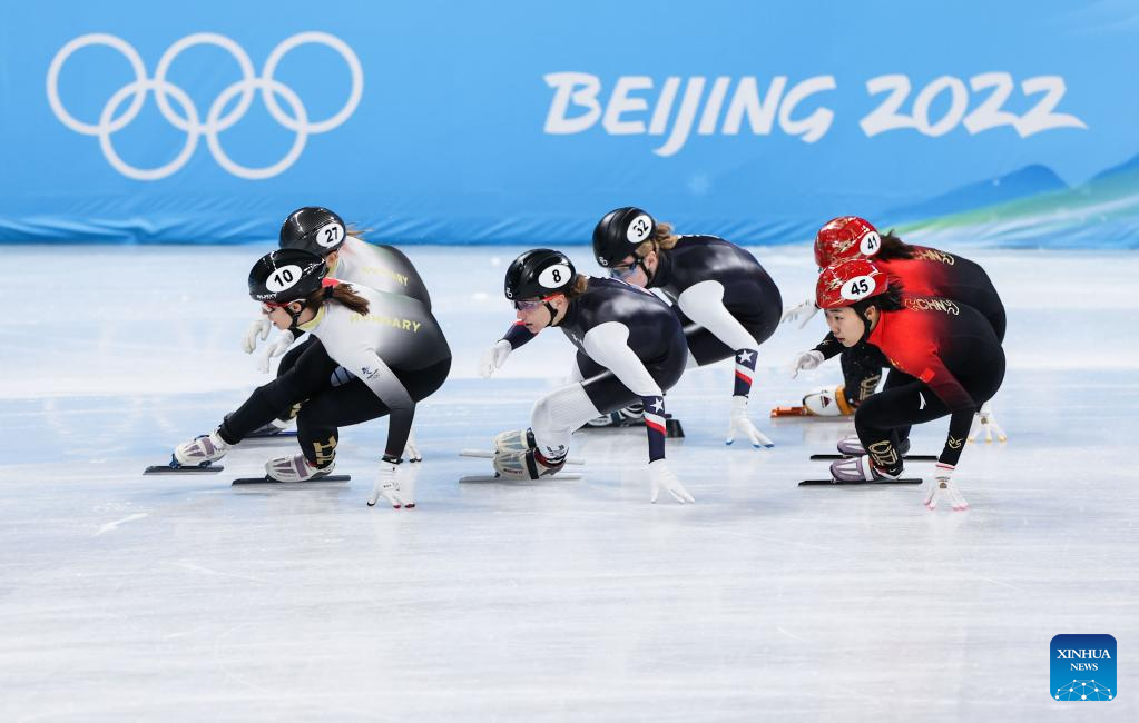 Athletes compete during the mixed team relay semifianl of short track speed skating at Capital Indoor Stadium in Beijing, China, Feb. 5, 2022. (Xinhua/Yang Lei)