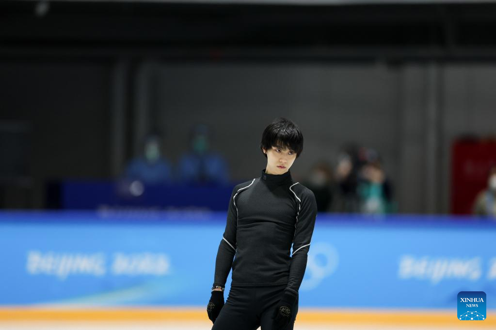 Hanyu Yuzuru of Japan trains at Capital Indoor Stadium in Beijing, capital of China, Feb. 7, 2022. (Xinhua/Cao Can)