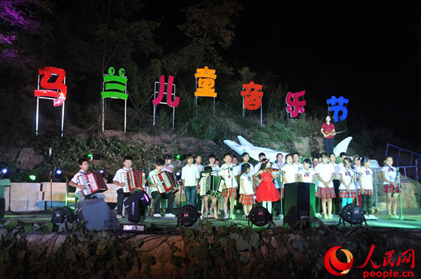 Deng Xiaolan and children from Malan village sing the song Auld Lang Syne during a concert she organized in 2013. (People’s Daily Online/Shen Yaxin)