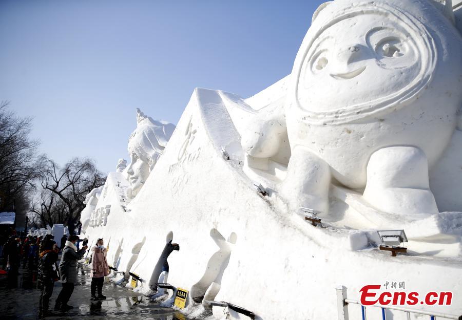 Mascot sculptures of Winter Games attract tourists in Heilongjiang