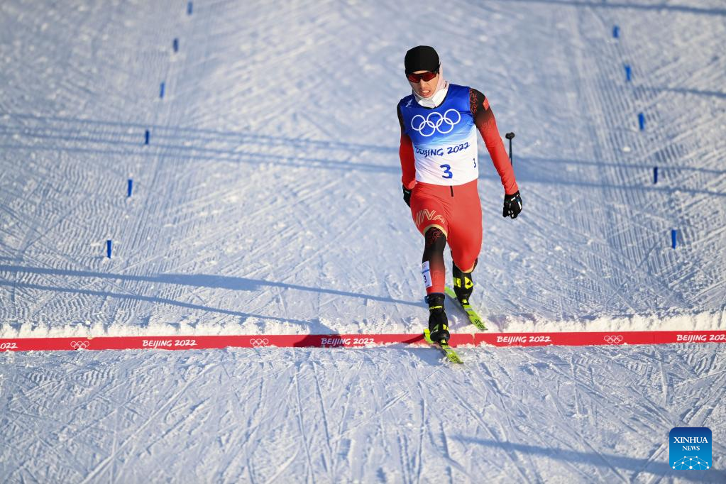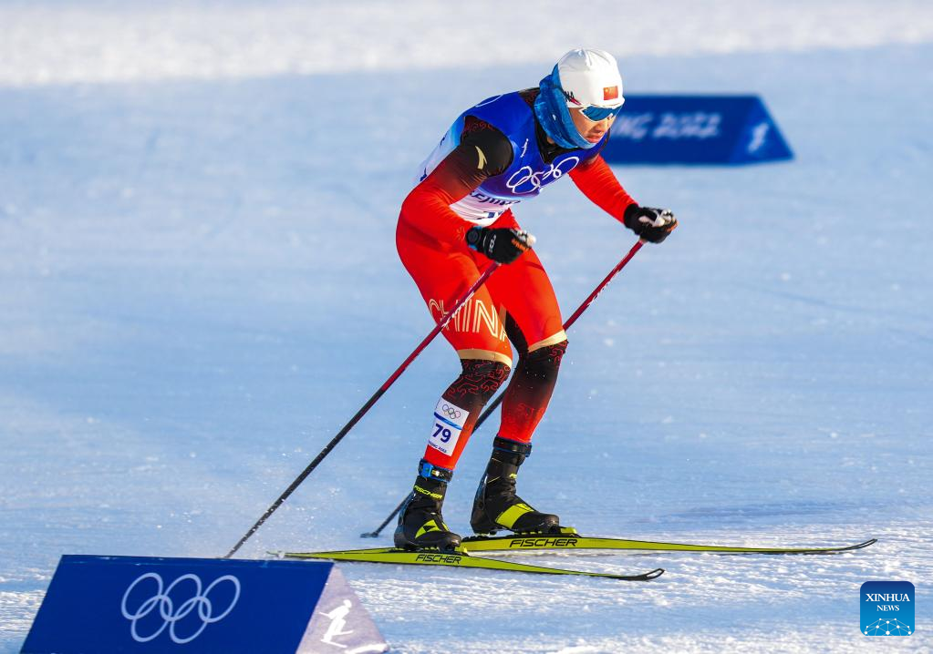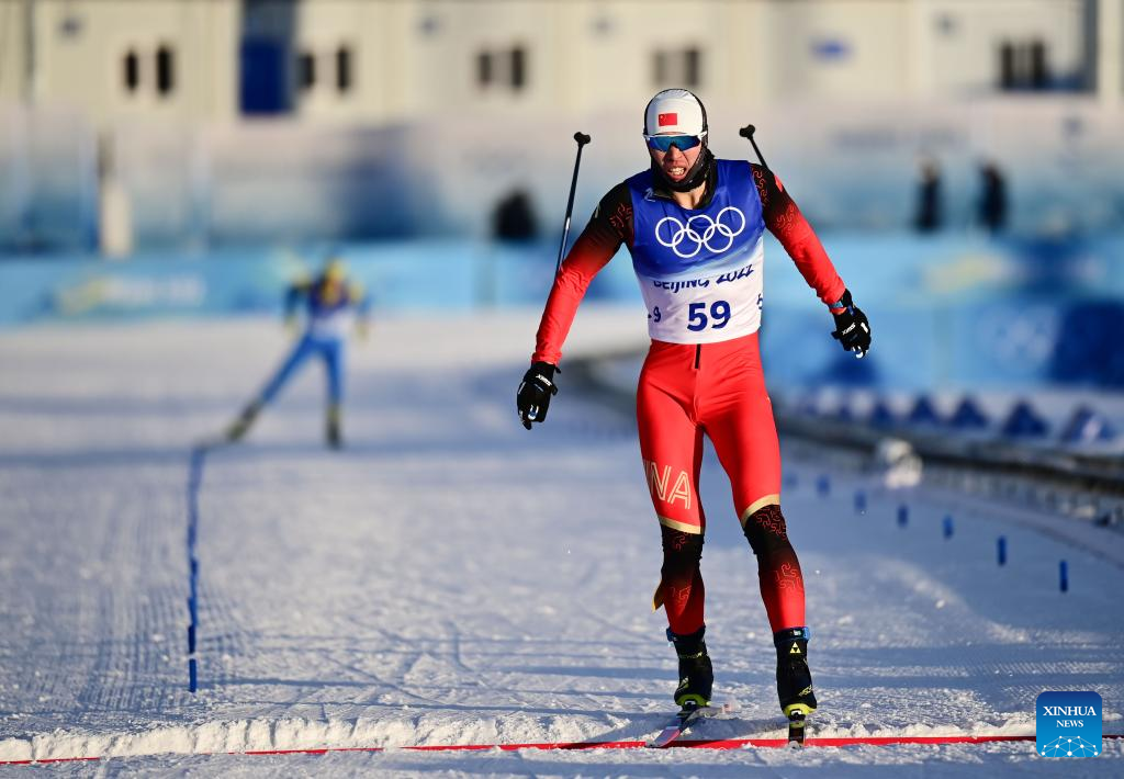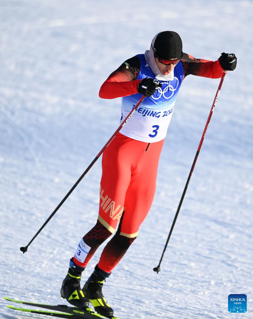 Liu Rongsheng of China competes during the cross-country skiing men's sprint free qulification match of Beijing 2022 Winter Olympics at Zhangjiakou National Cross-country Skiing Centre in Zhangjiakou, north China's Hebei Province, Feb. 8, 2022. (Xinhua/Wang Song)