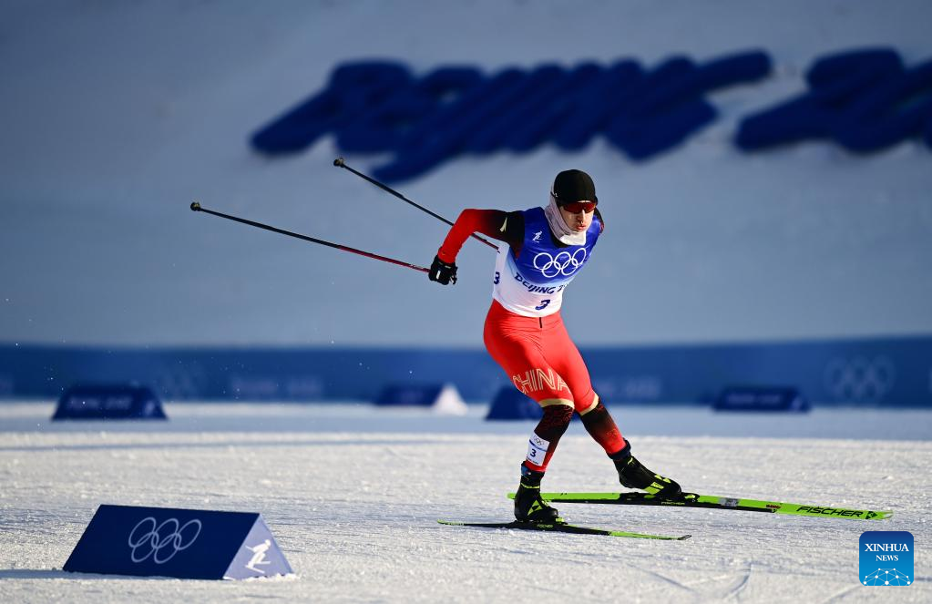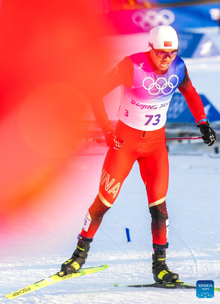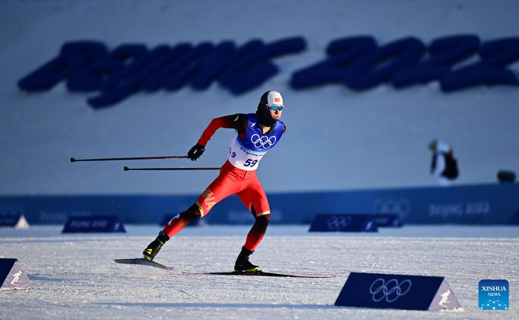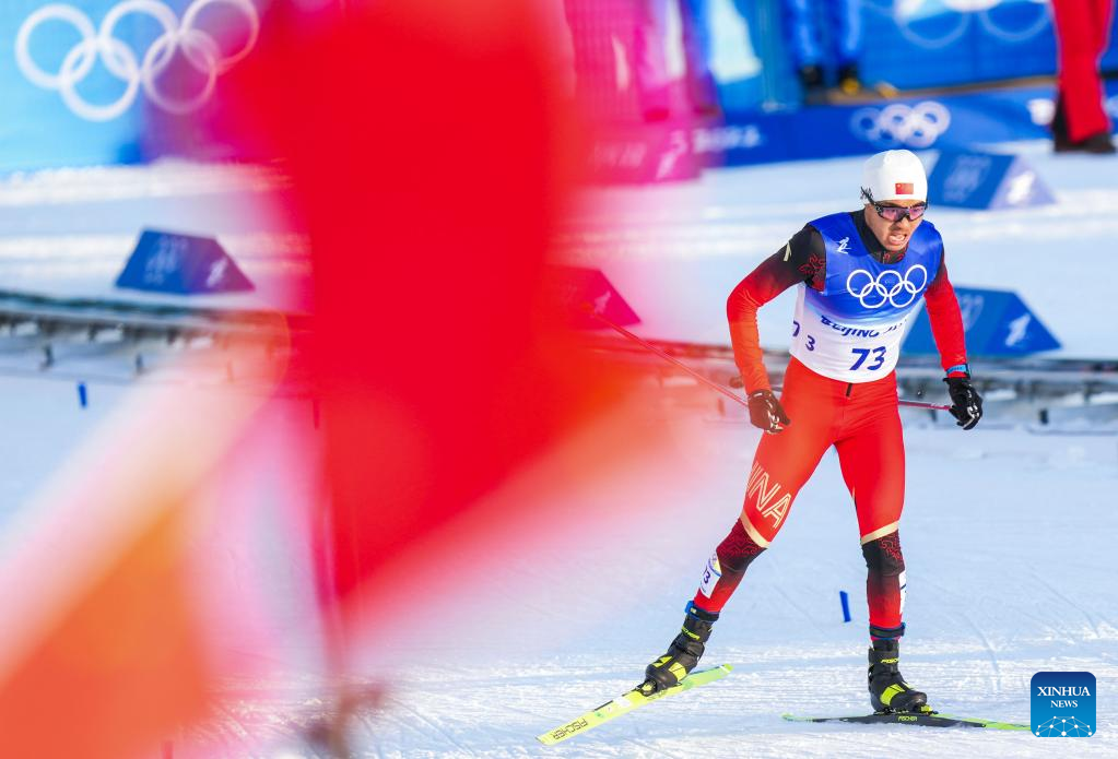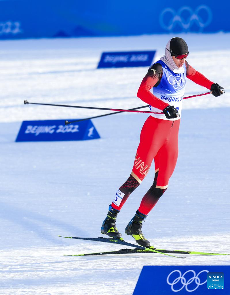 Wang Qiang of China competes during the cross-country skiing men's sprint free qualification match of Beijing 2022 Winter Olympics at Zhangjiakou National Cross-country Skiing Centre in Zhangjiakou, north China's Hebei Province, Feb. 8, 2022. (Xinhua/Zhang Hongxiang)