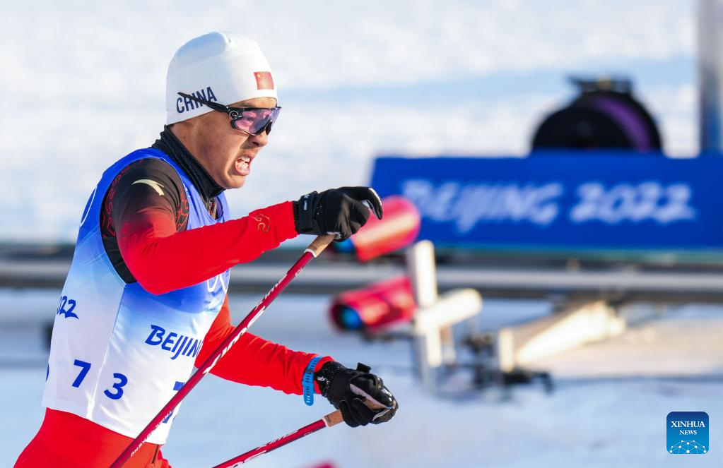 Shang Jincai of China competes during the cross-country skiing men's sprint free qualification match of Beijing 2022 Winter Olympics at Zhangjiakou National Cross-country Skiing Centre in Zhangjiakou, north China's Hebei Province, Feb. 8, 2022. (Xinhua/Zhang HongXiang)