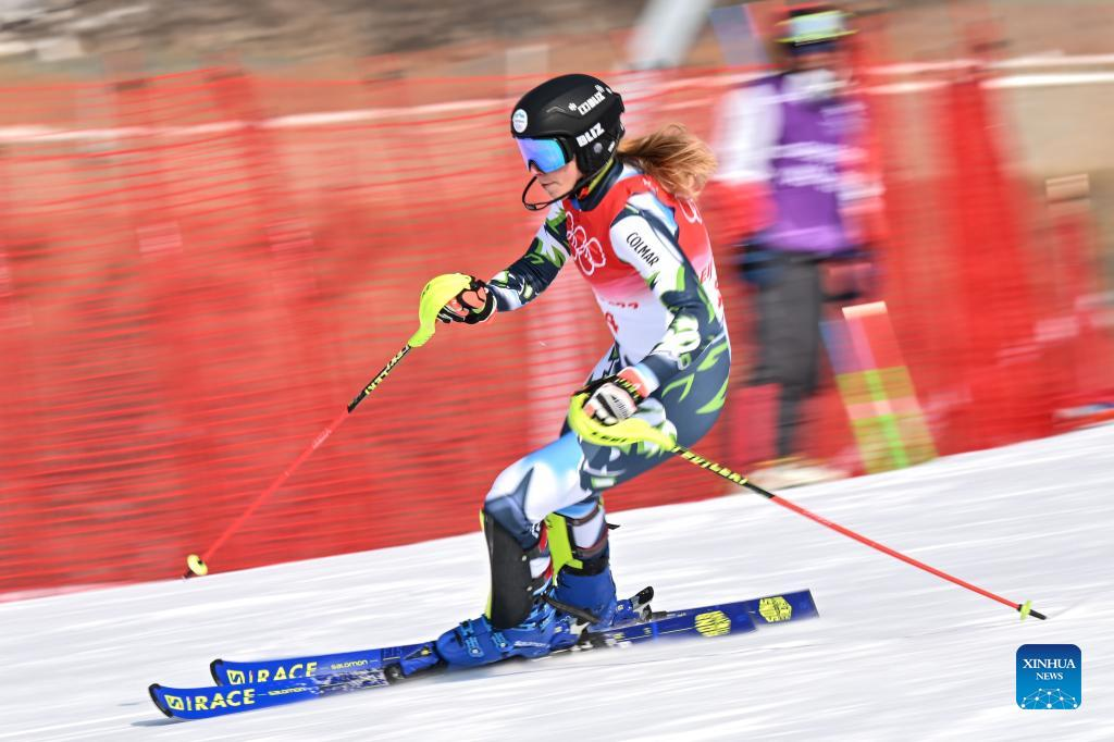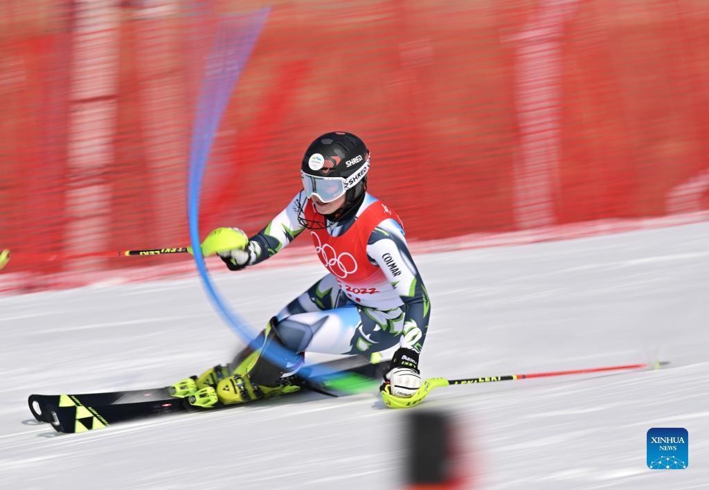 Ana Bucik of Slovenia competes during the alpine skiing women's slalom of the Beijing 2022 Winter Olympics at Yanqing National Alpine Skiing Centre in Beijing, capital of China, Feb. 9, 2022. (Xinhua/Chen Yichen)