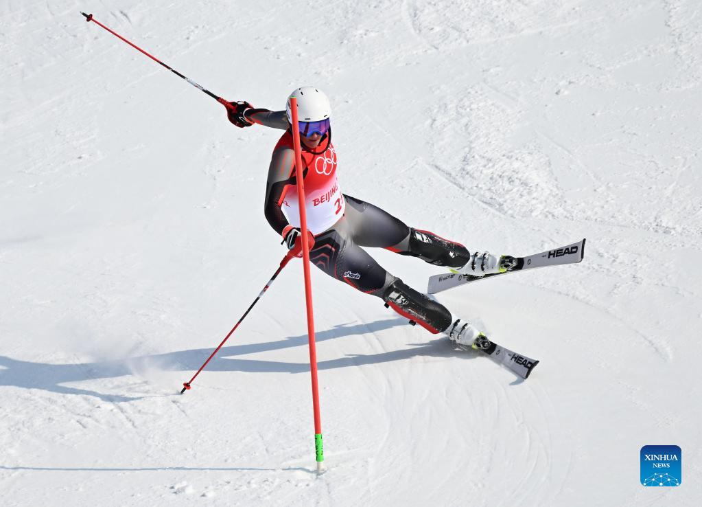 Neja Dvornik of Slovenia competes during alpine skiing women's slalom at the National Alpine Skiing Centre in Yanqing District, Beijing, capital of China, Feb. 8, 2022. (Xinhua/Chen Yichen)