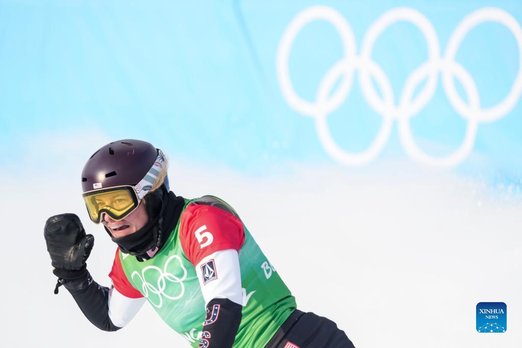 CHONGLI, Zhangjiakou, Feb. 9 (Xinhua) -- Lindsey Jacobellis of the United States won the women's snowboard cross of the Beijing Olympic Winter Games at the Genting Snow Park here on Wednesday.