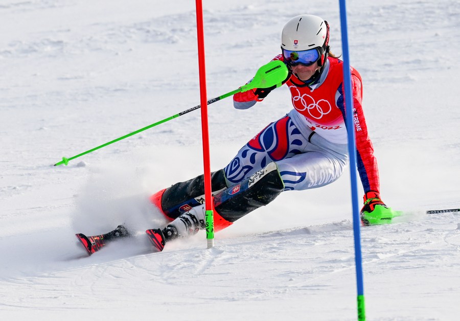 Petra Vlhova of Slovakia competes during the Alpine skiing women's slalom of Beijing 2022 Winter Olympics at National Alpine Skiing Center in Yanqing District, Beijing on Feb. 9, 2022. (Xinhua/Lian Zhen)