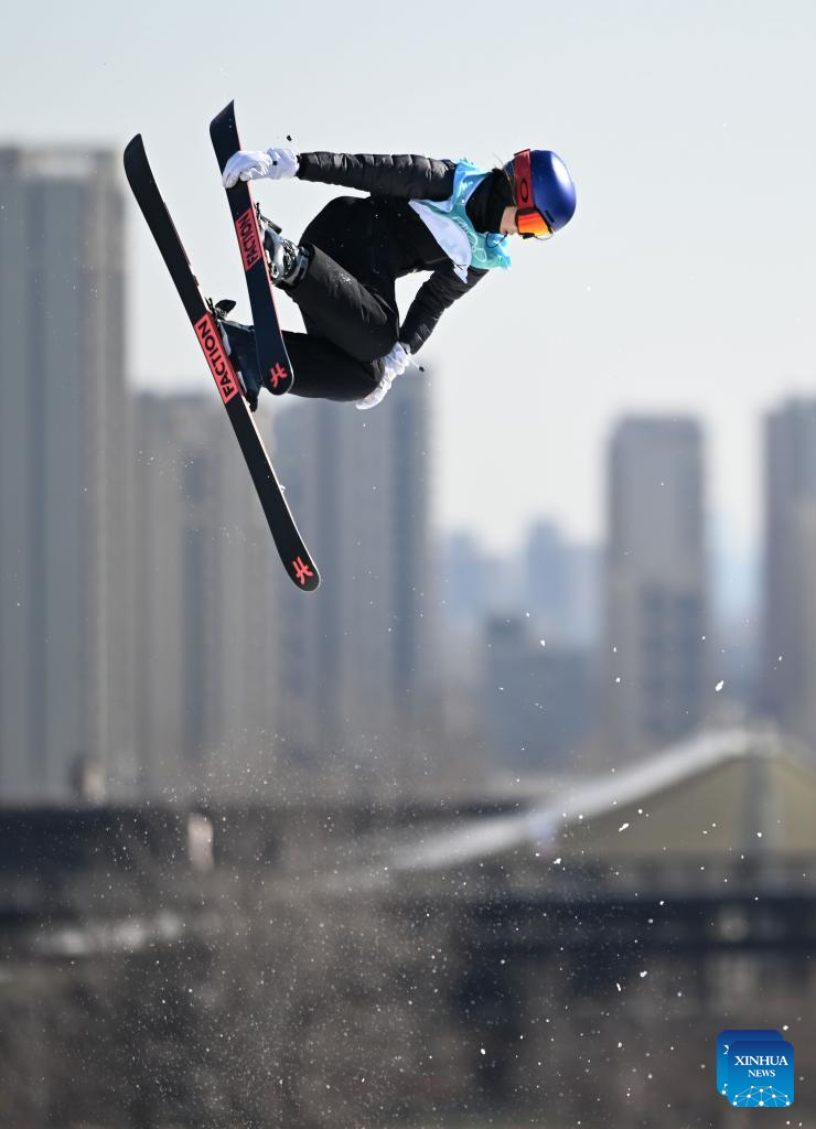 Gu Ailing of China competes during women's freeski big air final at Big Air Shougang in Beijing, capital of China, Feb. 8, 2022. (Xinhua/Li Ga)