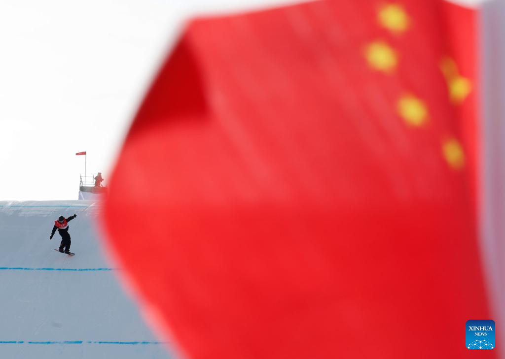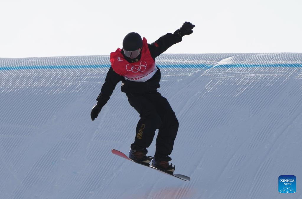 China's Su Yiming competes during men's snowboard slopestyle final at the Genting Snow Park in Zhangjiakou, north China's Hebei Province, Feb. 7, 2022. (Xinhua/Yang Shiyao)