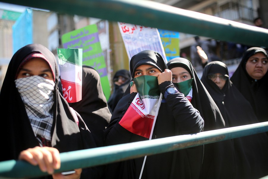 Iranian students take part in a rally marking the 37th anniversary of taking over the U.S. embassy by a group of Iranian students in Tehran, capital of Iran, on Nov. 3, 2016. (Xinhua File photo)