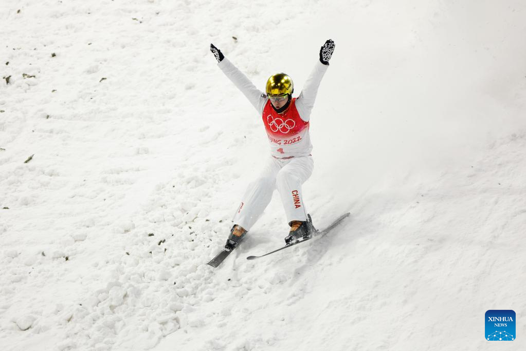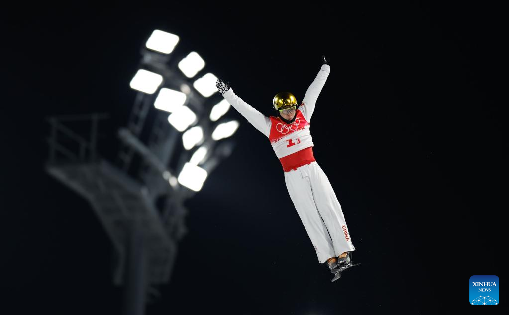 Qi Guangpu of China competes during the freestyle skiing mixed team aerials final at Genting Snow Park in Zhangjiakou, north China's Hebei Province, Feb. 10, 2022. (Xinhua/Fei Maohua)