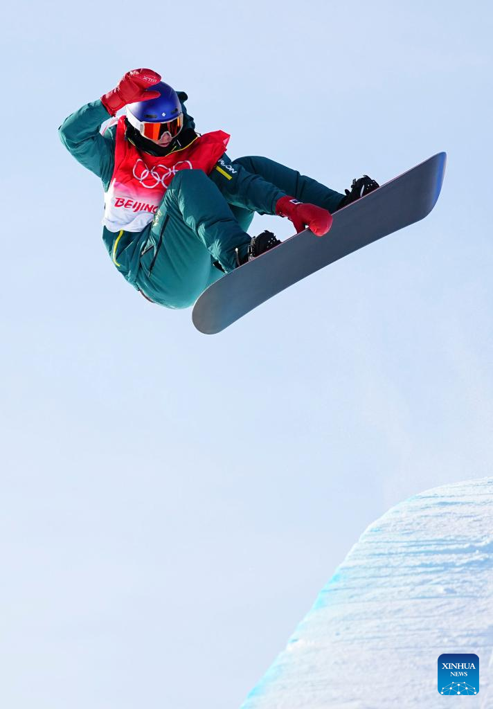Scotty James of Australia competes during men's snowboard halfpipe final of Beijing 2022 Winter Olympics at Genting Snow Park in Zhangjiakou, north China's Hebei Province, Feb. 11, 2022. (Xinhua/Wu Zhuang)