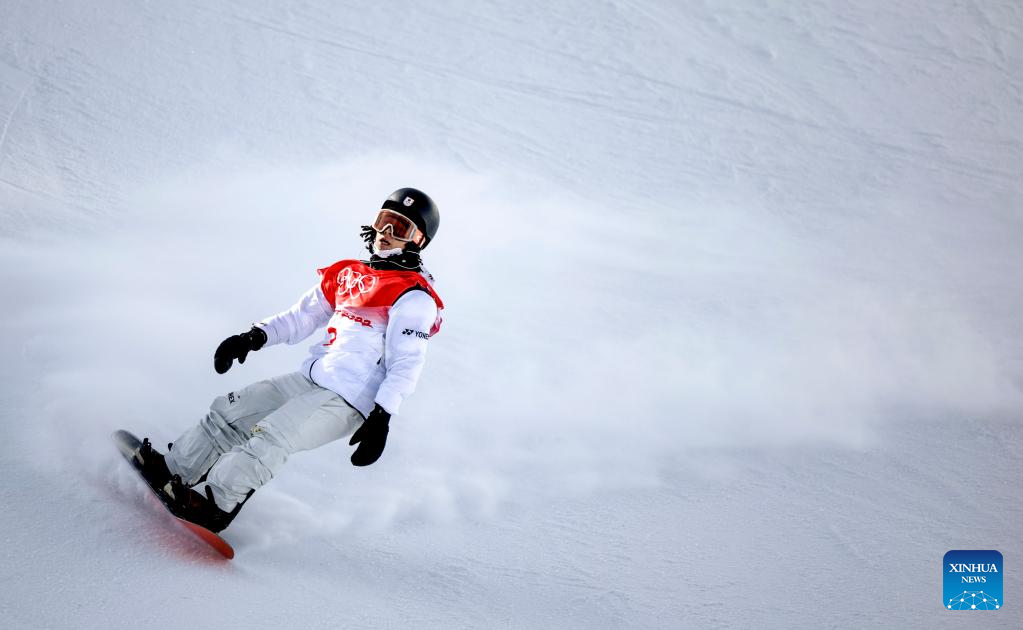 Jan Scherrer of Switzerland competes during men's snowboard halfpipe final of Beijing 2022 Winter Olympics at Genting Snow Park in Zhangjiakou, north China's Hebei Province, Feb. 11, 2022. (Xinhua/Xu Chang)
