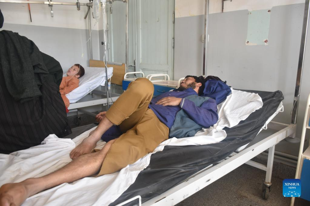 Injured people receive medical treatment at a hospital in Qala-e-Naw, capital of Badghis Province, Afghanistan, Feb. 11, 2022. One person was dead and 14 others were injured after an explosive device went off in front of the main mosque in Qala-e-Naw, provincial health chief Mohammad Asif Qanet said on Friday. (Photo by Mashal/Xinhua)