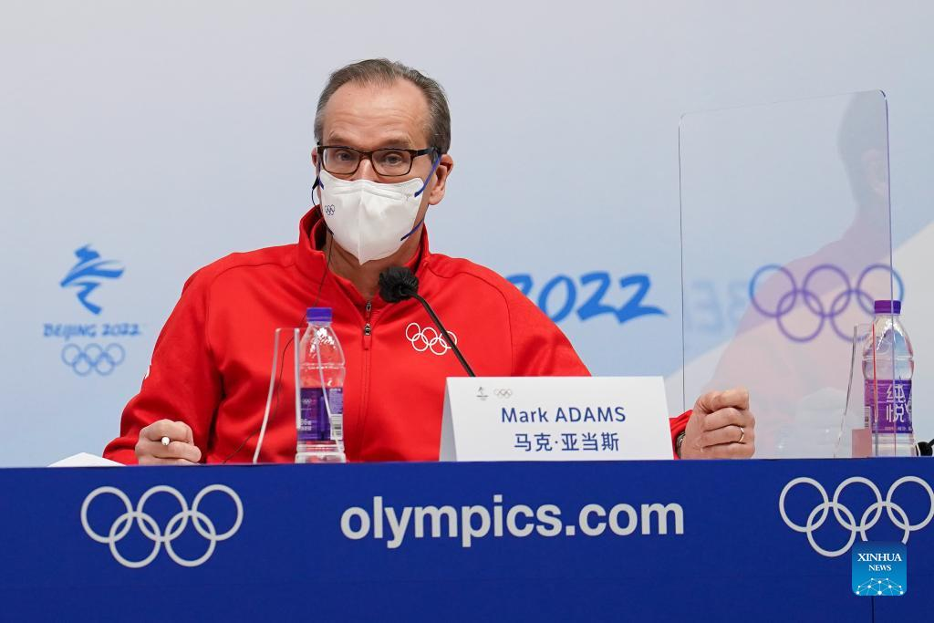 Mark Adams, spokesperson of the International Olympic Committee (IOC) speaks during a regular news conference of the BOCOG and IOC in Beijing, capital of China, Feb. 12, 2022. (Xinhua/Ju Huanzong)