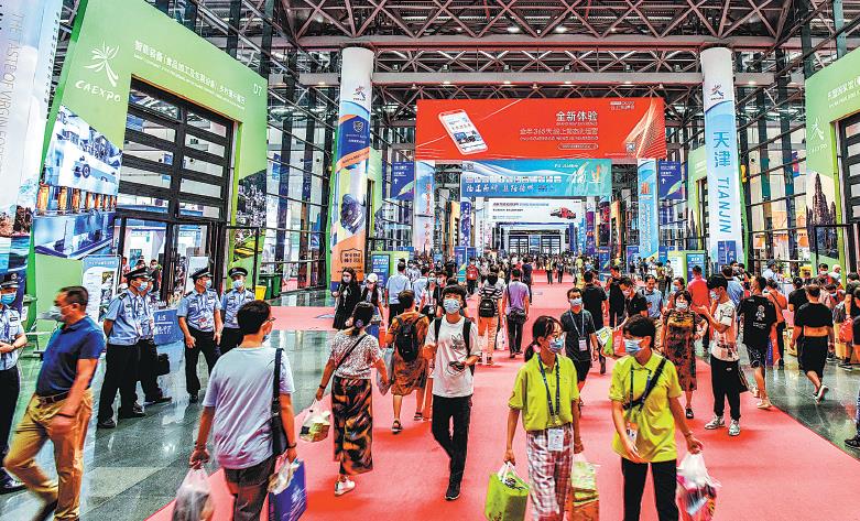 Consumers step out after shopping at the 18th China-ASEAN Expo in Nanning, Guangxi Zhuang autonomous region, on Sept 13. (Photo by Peng Huan/For China Daily)