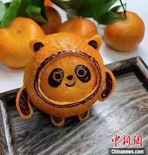 Photo shows a Bing Dwen Dwen made out of an orange. (Chinanews.com/Yi Fei)