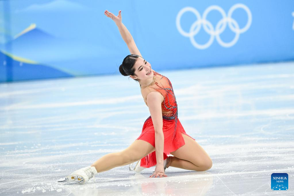 Alysa Liu of the United States performs during the figure skating women single skating short program at Capital Indoor Stadium in Beijing, capital of China, Feb. 15, 2022. (Xinhua/Chen Jianli)