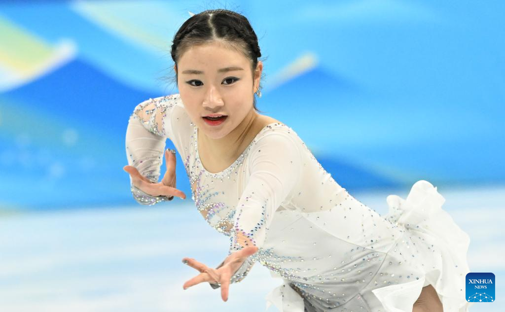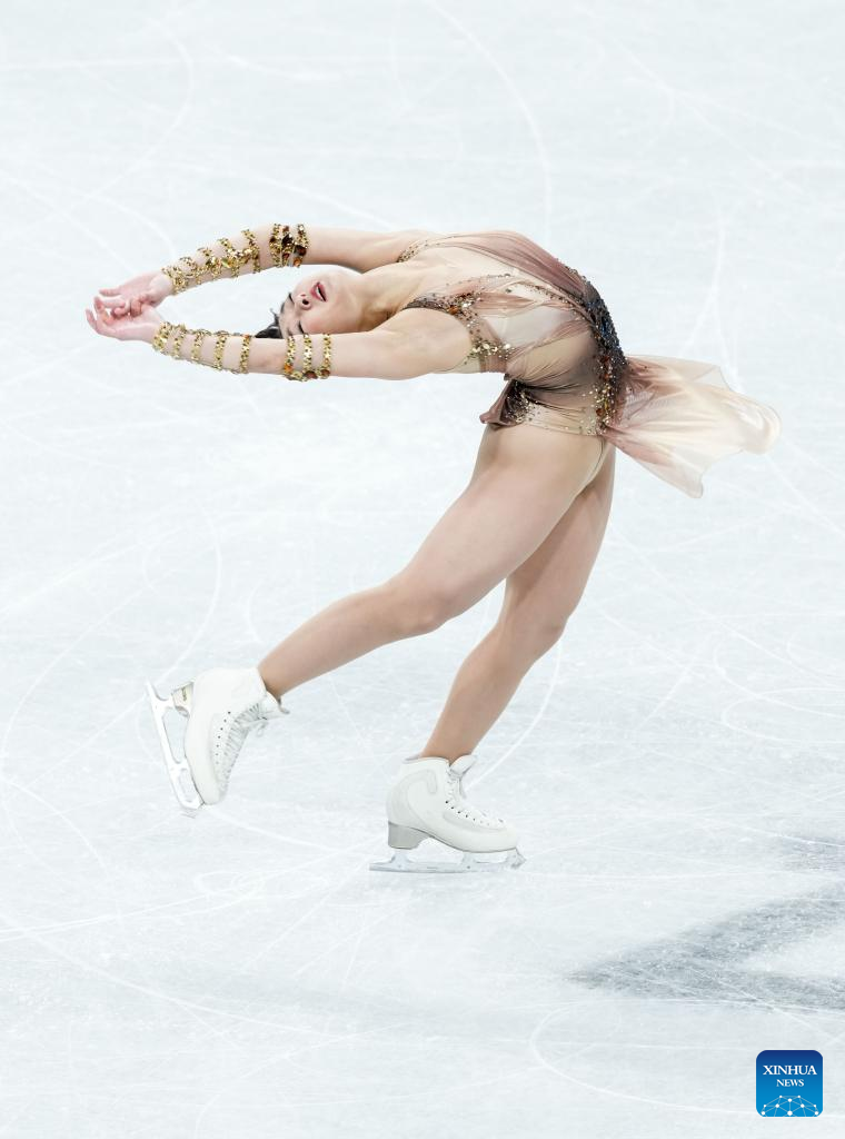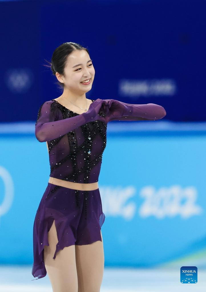 Kawabe Mana of Japan performs during the figure skating women single skating short program at Capital Indoor Stadium in Beijing, capital of China, Feb. 15, 2022. (Xinhua/Ma Ning)
