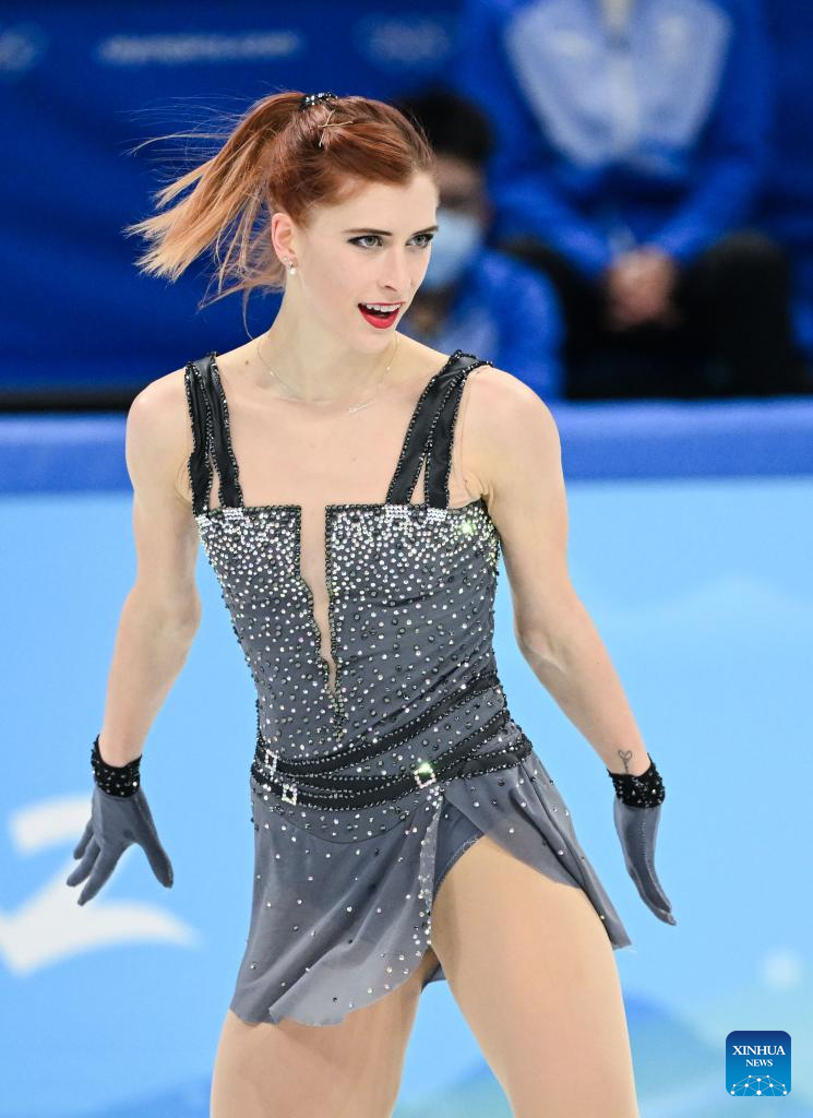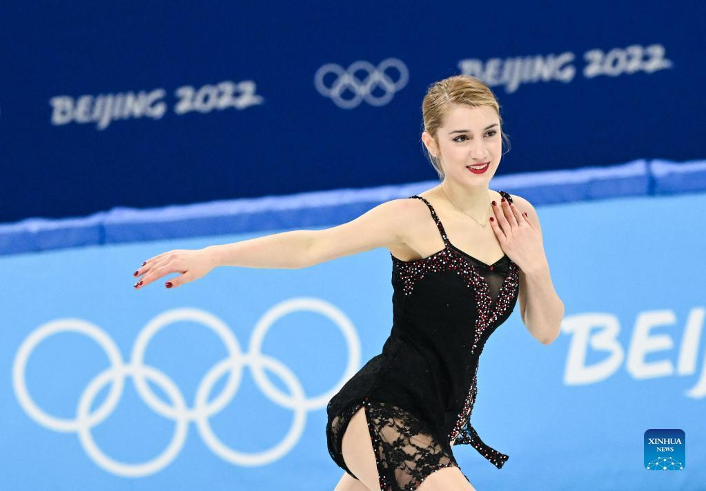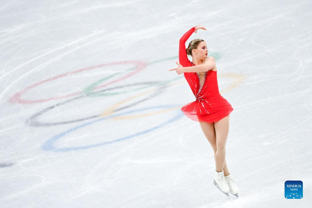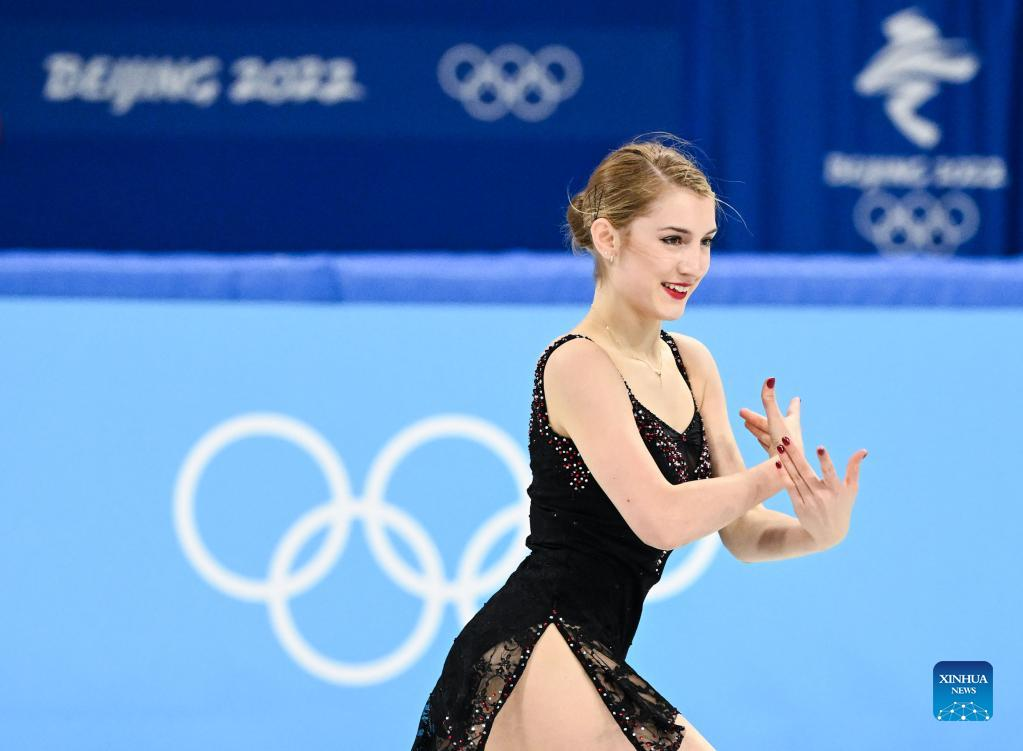 Olga Mikutina of Austria performs during the figure skating women single skating short program at Capital Indoor Stadium in Beijing, capital of China, Feb. 15, 2022. (Xinhua/Chen Jianli)