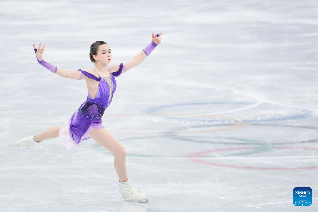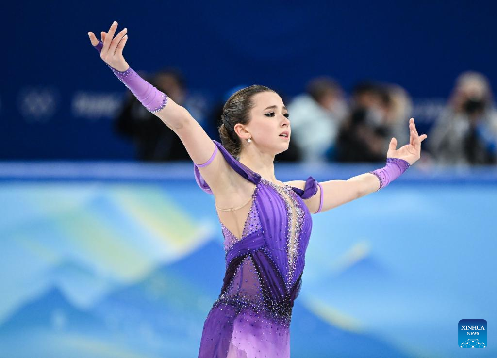 Kamila Valieva of ROC performs during the figure skating women single skating short program at Capital Indoor Stadium in Beijing, capital of China, Feb. 15, 2022. (Xinhua/Xue Yuge)