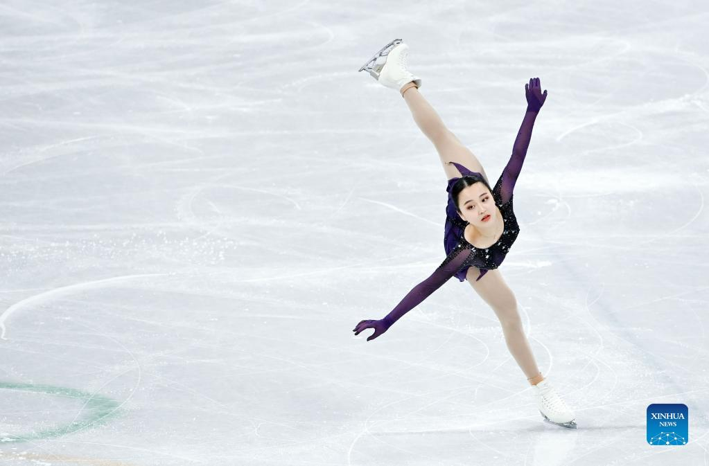You Young of South Korea performs during the figure skating women single skating short program at Capital Indoor Stadium in Beijing, capital of China, Feb. 15, 2022. (Xinhua/Chen Jianli)