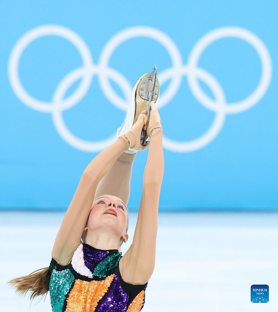 Alexandra Trusova of ROC performs during the figure skating women single skating short program at Capital Indoor Stadium in Beijing, capital of China, Feb. 15, 2022. (Xinhua/Ma Ning)