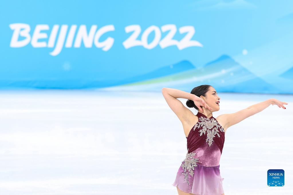 Alysa Liu of the United States performs during the figure skating women single skating short program at Capital Indoor Stadium in Beijing, capital of China, Feb. 15, 2022. (Xinhua/Ma Ning)