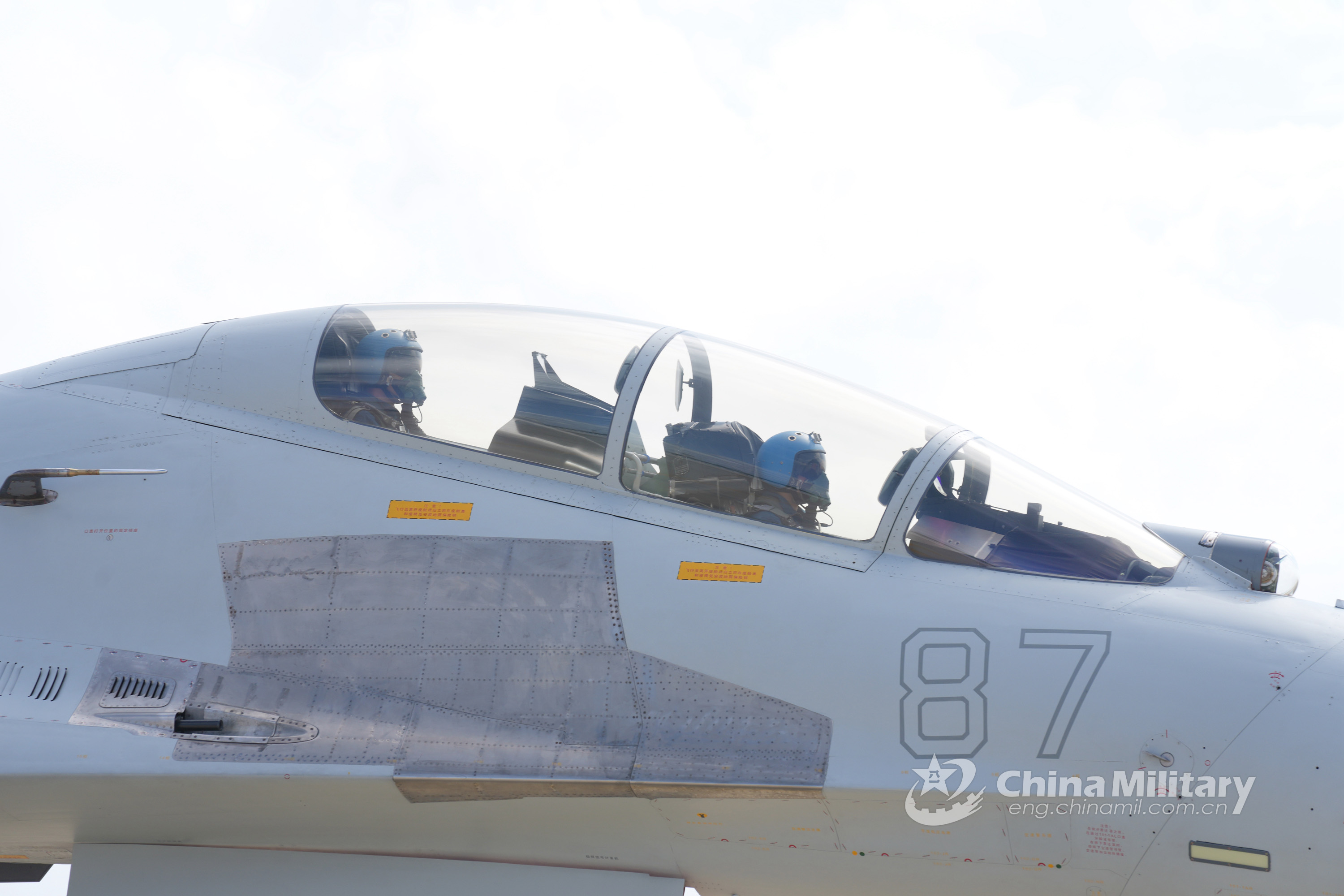 Two pilots assigned to a naval aviation brigade under the PLA Southern Theater Command sit in the cockpit and get ready for a round-the-clock flight training exercise on January 19, 2022. (eng.chinamil.com.cn/Photo by Gao Hongwei)