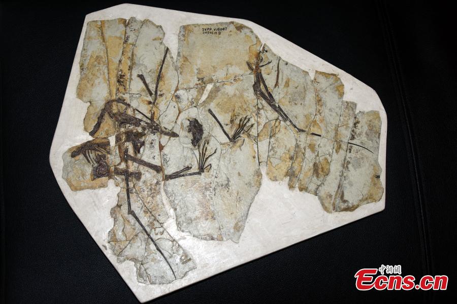 Photo taken on Feb. 16, 2022 shows a fossil specimen of pterosaur in Beijing. (Photo: China News Service/Sun Zifa)
