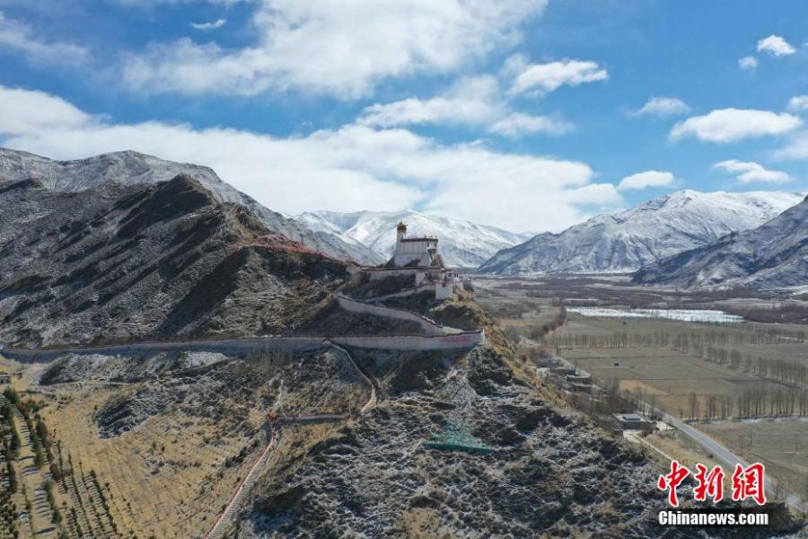 An aerial view of the ancient palace Yumbu Lakhang in Shannan City, southwest China's Tibet Autonomous Region. Yumbu Lakhang was built atop a small hill in the 2nd century BC and believed to be the oldest palace in Tibet. The palace was named after the shape of the mountain it was built on and listed as a regional-level cultural relic in Tibet in 1962. (Photo/China News Serive)