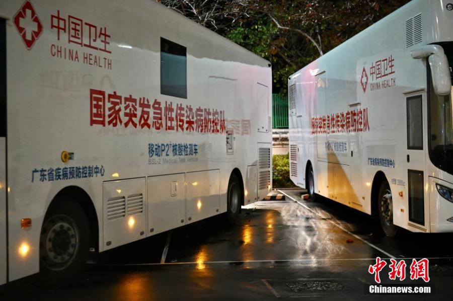 Mobile COVID-19 test vehicles arrive at Hong Kong's Huo-Yan nucleic acid test laboratory at the Ma on Shan Sports Center, Feb. 17, 2022. (Photo: China News Service/Li Zhi Hua)