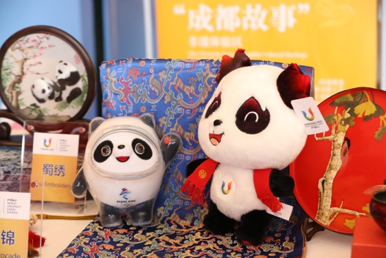 Bing Dwen Dwen, left, the mascot of the Beijing 2022 Winter Olympics, and Rongbao, the mascot of the Chengdu 2021 FISU Games. [Photo provided to China Daily]