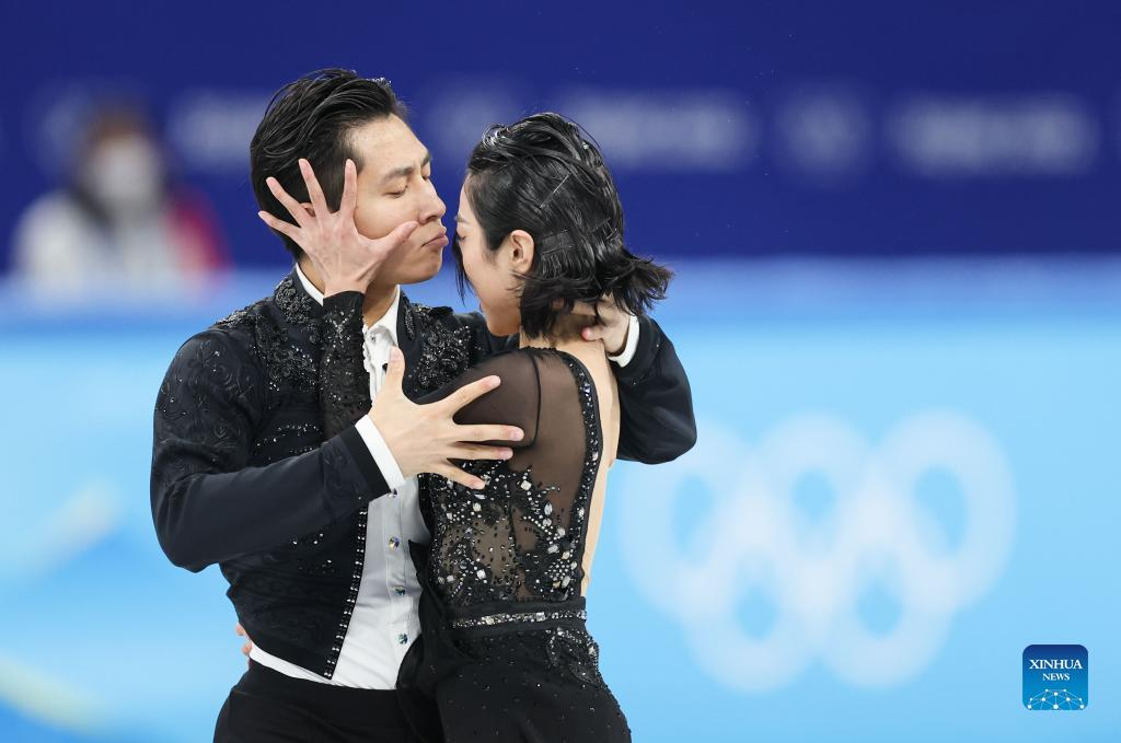 Vanessa James(R)/Eric Radford of Canada perform during the figure skating pair skating short program at Capital Indoor Stadium in Beijing, capital of China, Feb. 18, 2022. (Xinhua/Cao Can)